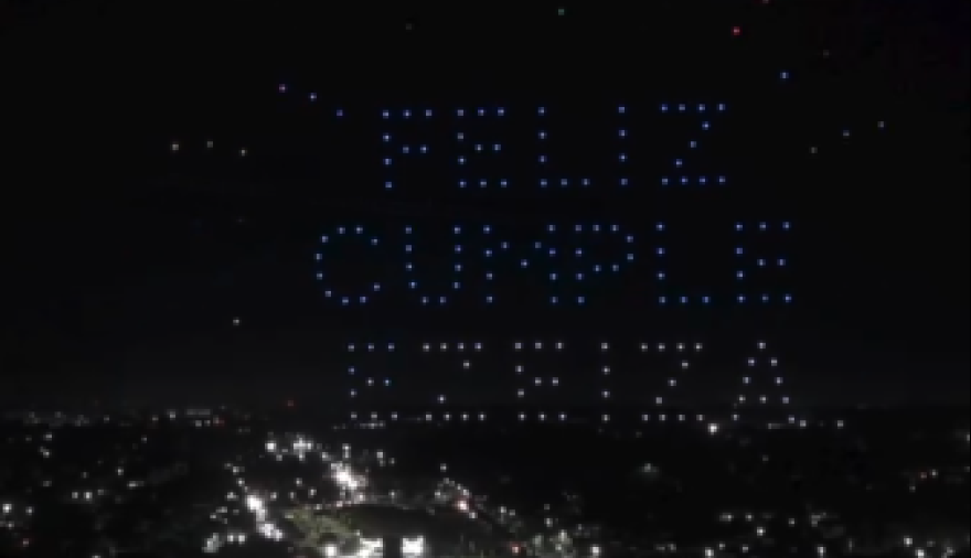El espectáculo central, con decenas de drones sincronizados, combinó tecnología, música y emoción. Las luces formaron imágenes alusivas a la historia local, mientras los vecinos registraban el momento con sus celulares.