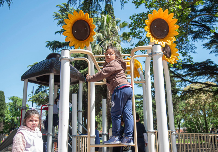Entre los equipos recientemente instalados se encuentran un mangrullo integrador, un mangrullo con toboganes, una calesita, dos pórticos de hamacas -uno de ellos con butacón integrador- y cuatro sube y baja simples. Además, se realizó el replanteo de los sectores de juego para adaptarlos a la estructura arbórea existente y conservar el entorno verde.