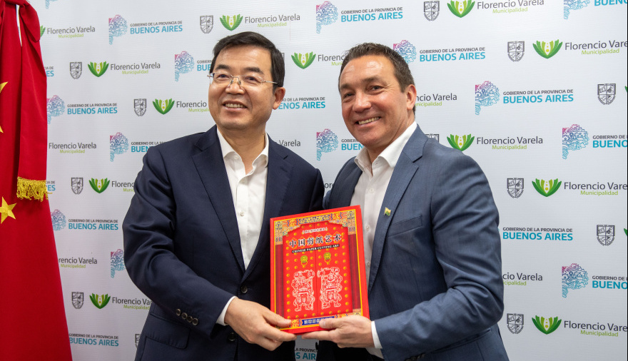 El intendente de Florencio Varela mantuvo una reunión bilateral con el vicegobernador de la provincia china de Shandong, Zhang Haibo, quien arribó al Parque Industrial y Tecnológico de Florencio Varela (PITec), en Ingeniero Allan, para fortalecer los vínculos entre ambas regiones.
