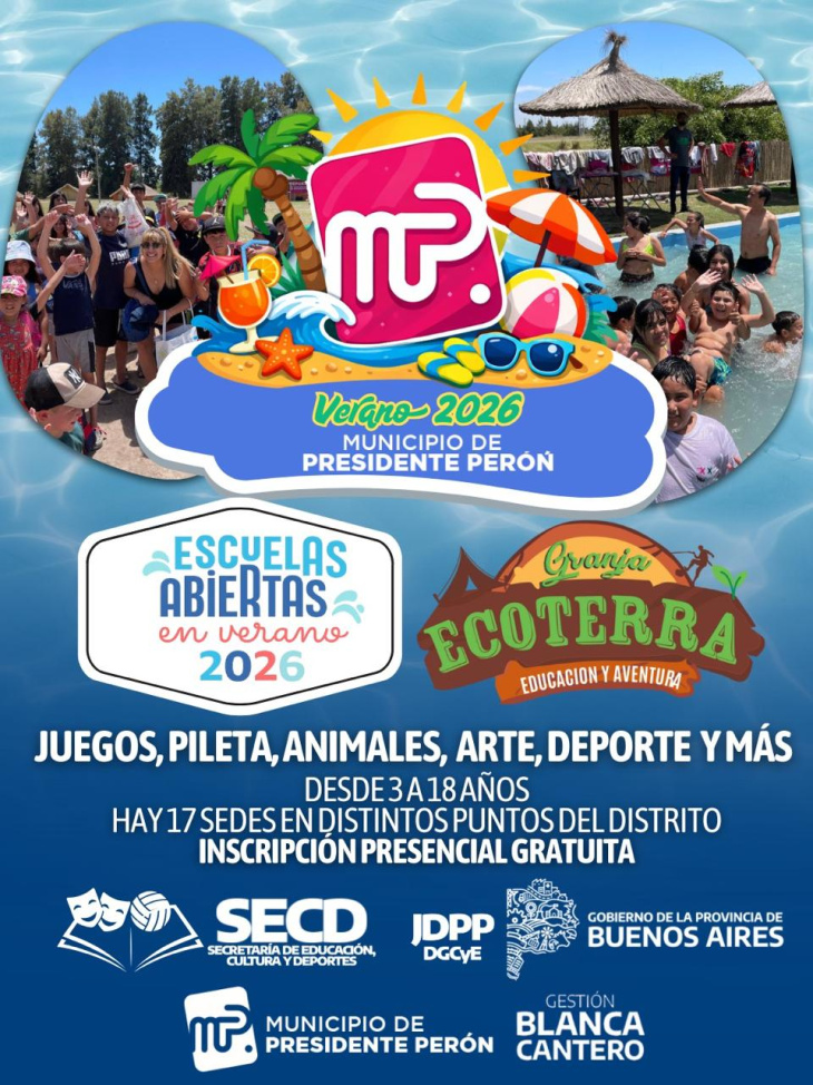 El municipio de Presidente Perón impulsa una nueva edición del programa Escuelas Abiertas en Verano, una propuesta destinada a chicas y chicos de entre 3 y 18 años que busca garantizar el acceso a actividades educativas y recreativas durante el receso estival.