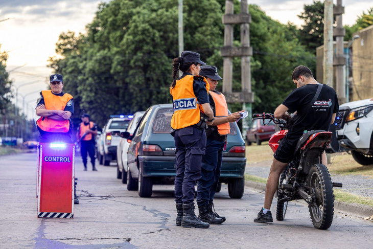 El despliegue incluyó efectivos a pie, móviles policiales, agentes motorizados y controles viales. También participó personal de Tránsito municipal, que llevó adelante verificaciones vehiculares durante el operativo.