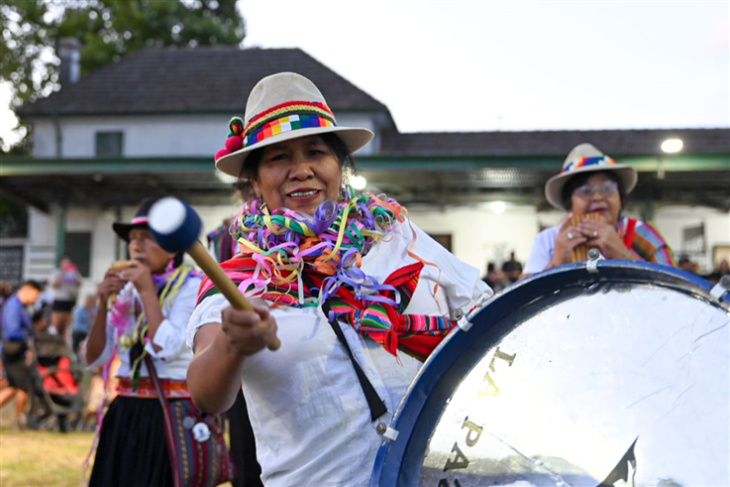 A partir de las 19, el escenario sumó intensidad y color con una grilla diversa: la Banda de Sikuris Sinchis Wayra, el Ballet San Vicente, el Ballet Los Salamanqueros, la Ronda de Cantoras con Cajas San Vicente – Glew, Bartolinas – Agrupación Artística Cultural Danzas Andinas, Sikuris Vientos Nativos San Vicente, Los Nativos y músicos invitados. La conducción estuvo a cargo de Walter Rojas, quien acompañó cada tramo del evento.