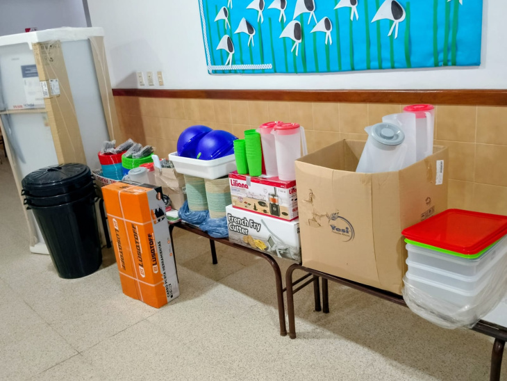 En esta oportunidad, se incorporaron una heladera nueva, una multiprocesadora eléctrica y una cortadora industrial de verduras. A estos elementos se sumó vajilla completa, con platos, tazas y cubiertos, necesarios para la preparación y distribución diaria de las comidas.