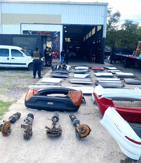 Durante el allanamiento, los investigadores secuestraron una importante cantidad de piezas automotrices cuya procedencia no pudo ser acreditada. Entre los elementos incautados había cajas de velocidades, puertas, paragolpes, amortiguadores y motores, varios de ellos con numeraciones suprimidas o sin la identificación correspondiente del Registro Único de Desarmaderos de Automotores y Actividades Conexas (RUDAC).