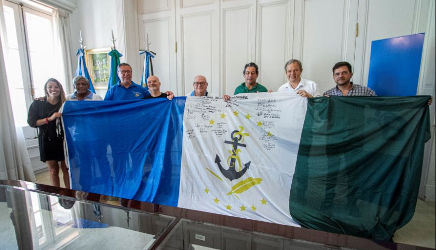 En esta oportunidad, Taño y Carrascosa dejaron su firma en la bandera municipal que rinde homenaje a los veteranos brownianos que participaron de este programa, vigente desde 2018, y que busca que los héroes locales retornen al escenario donde lucharon por la patria.